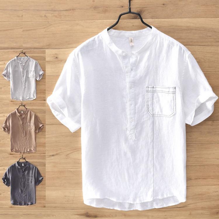 シャツ メンズ 半袖 リネンシャツ ヘンリーネック 無地 白シャツ 夏 バンドカラー プルオーバーシャツ カジュアルシャツ Ww004 セレクトショップ Pom 通販 Yahoo ショッピング